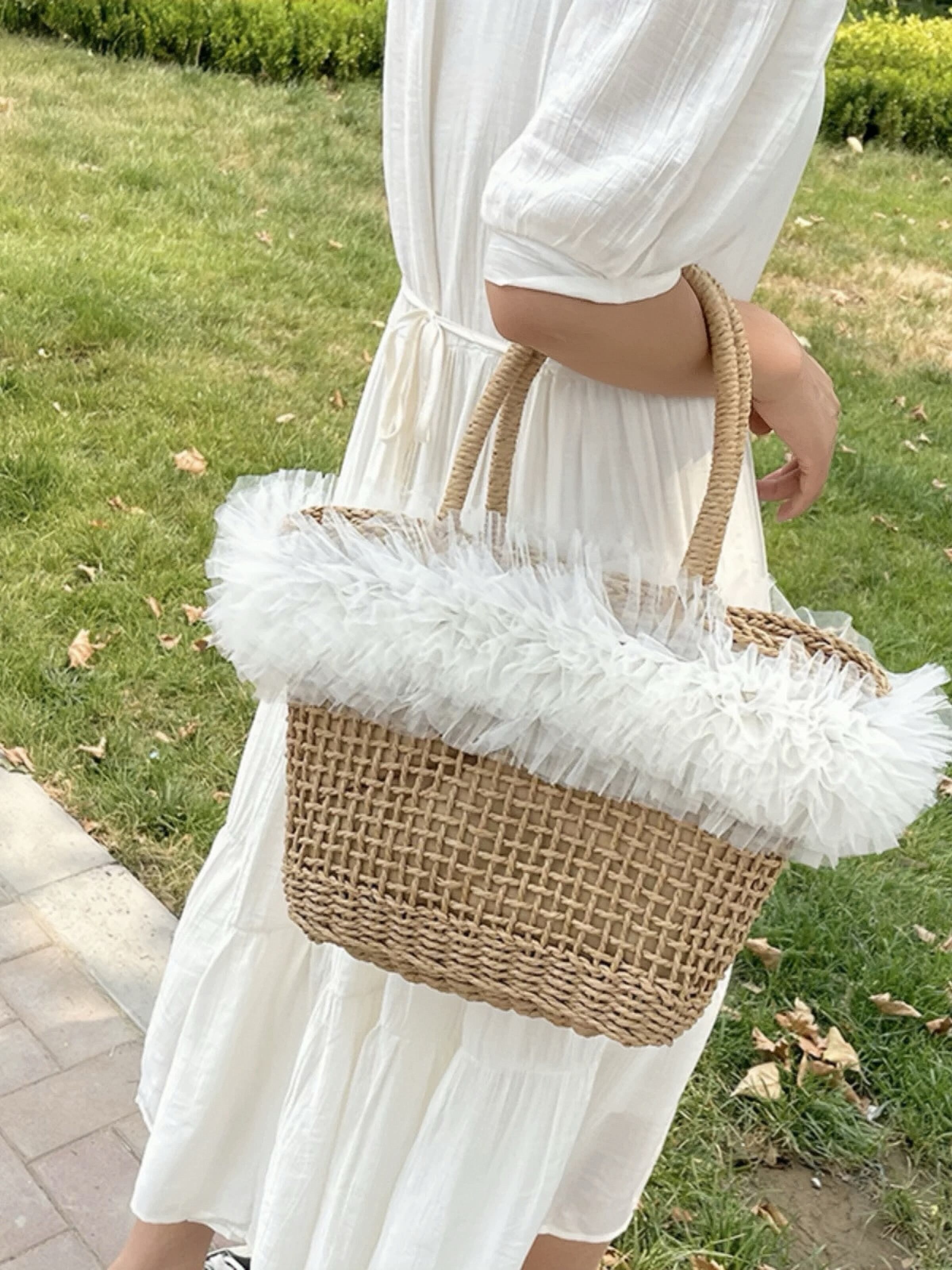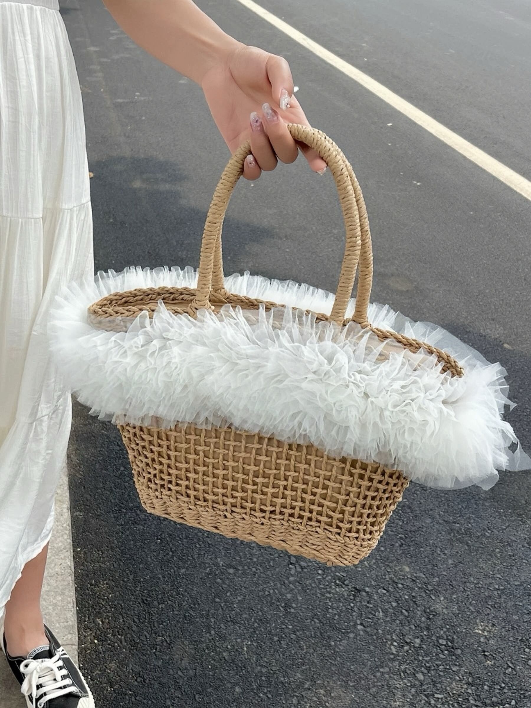 フリルレースがたっぷり付いたデザインカゴバッグ♩