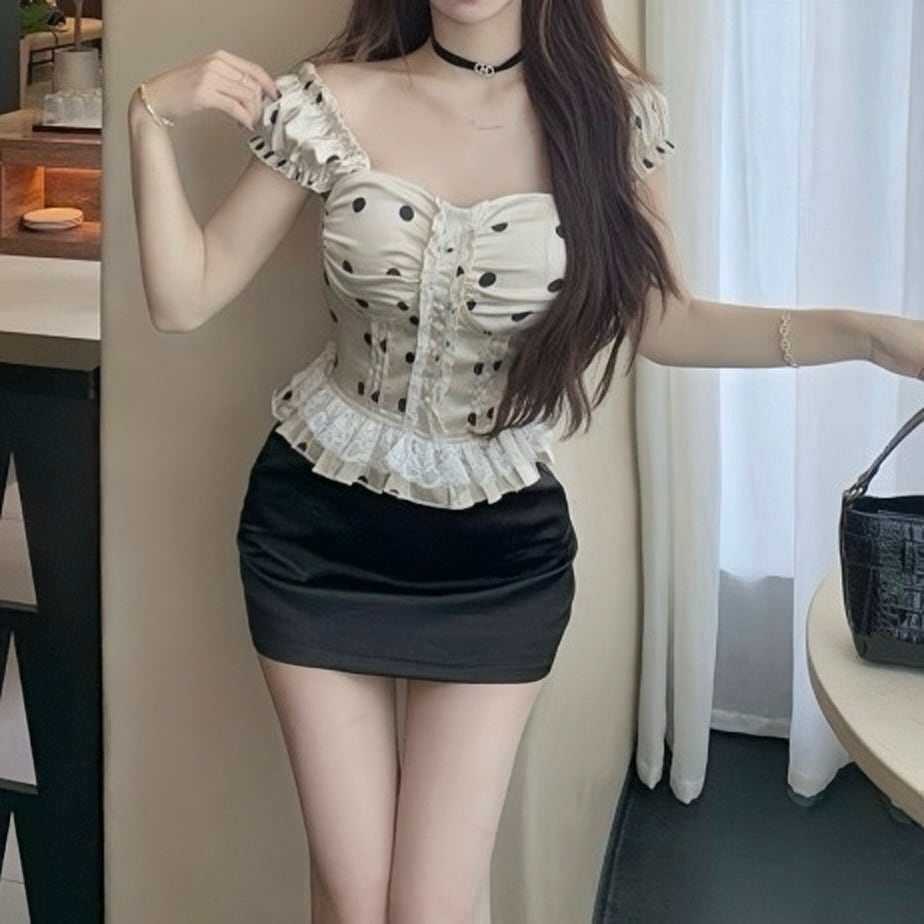 ドット柄×レースのデザインが甘くて可愛いトップス♡"
