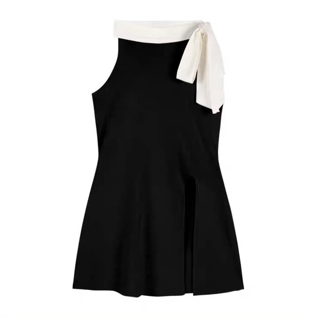 リボンネックスリット裾フレアトップス