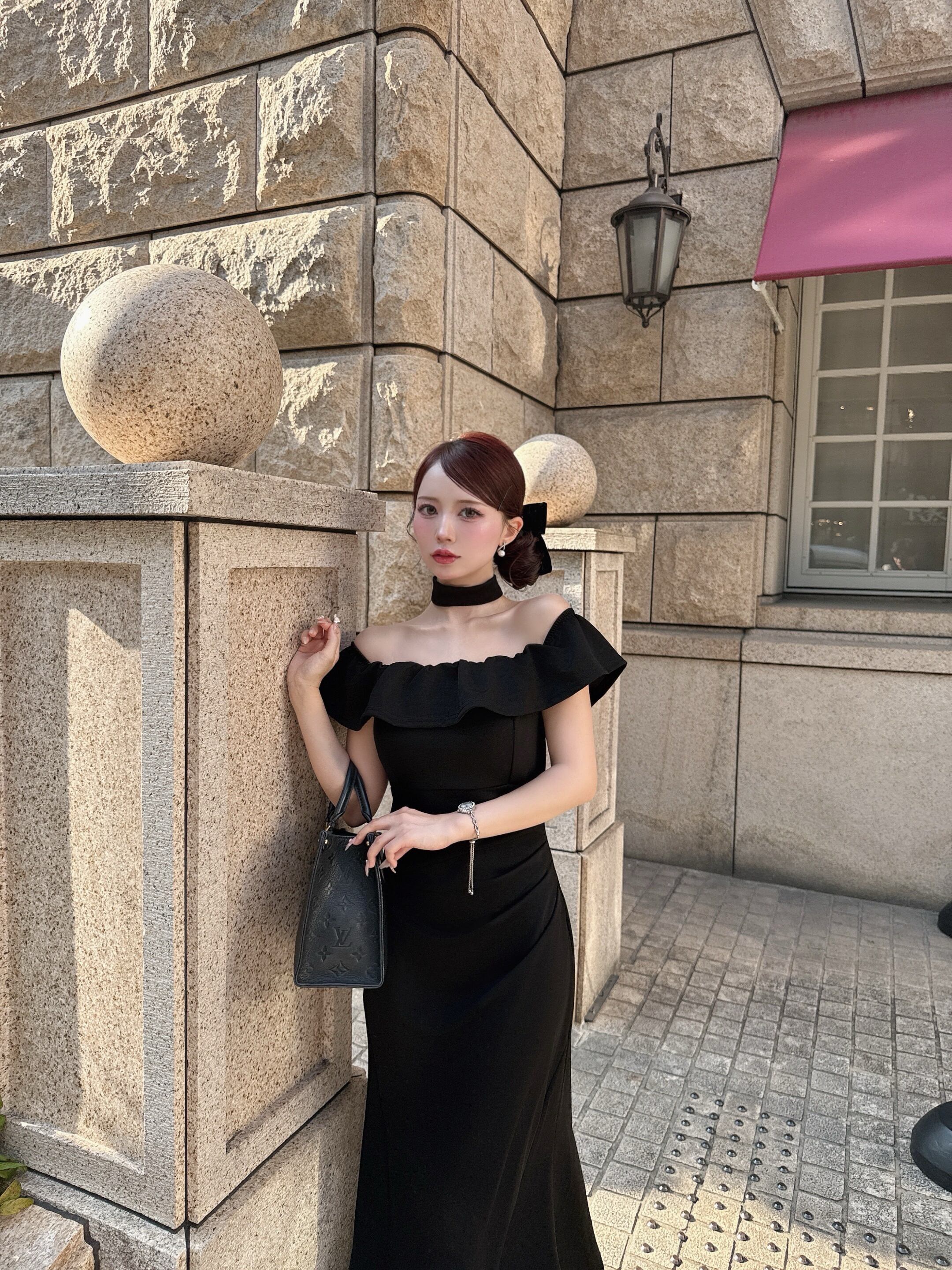 胸元部分にフリルが付いてボリュームが出てくれるから肩を華奢見せしてくれちゃう.°*