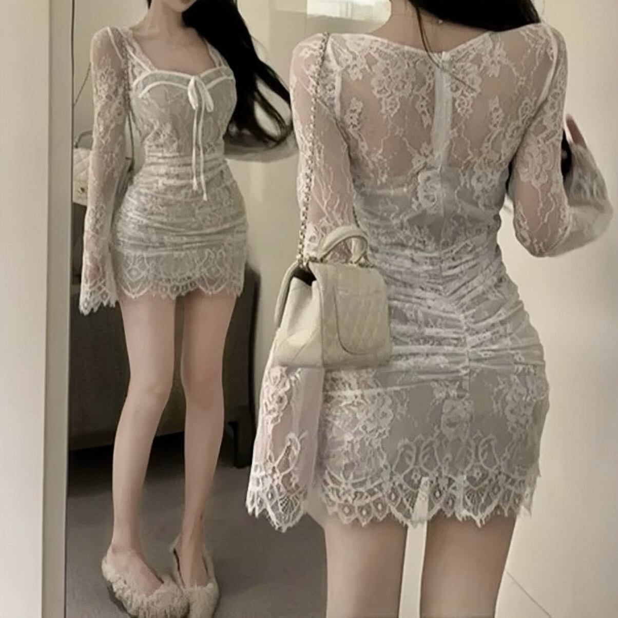 elmyuで人気の総レースデザインの長袖ミニワンピver♡♡