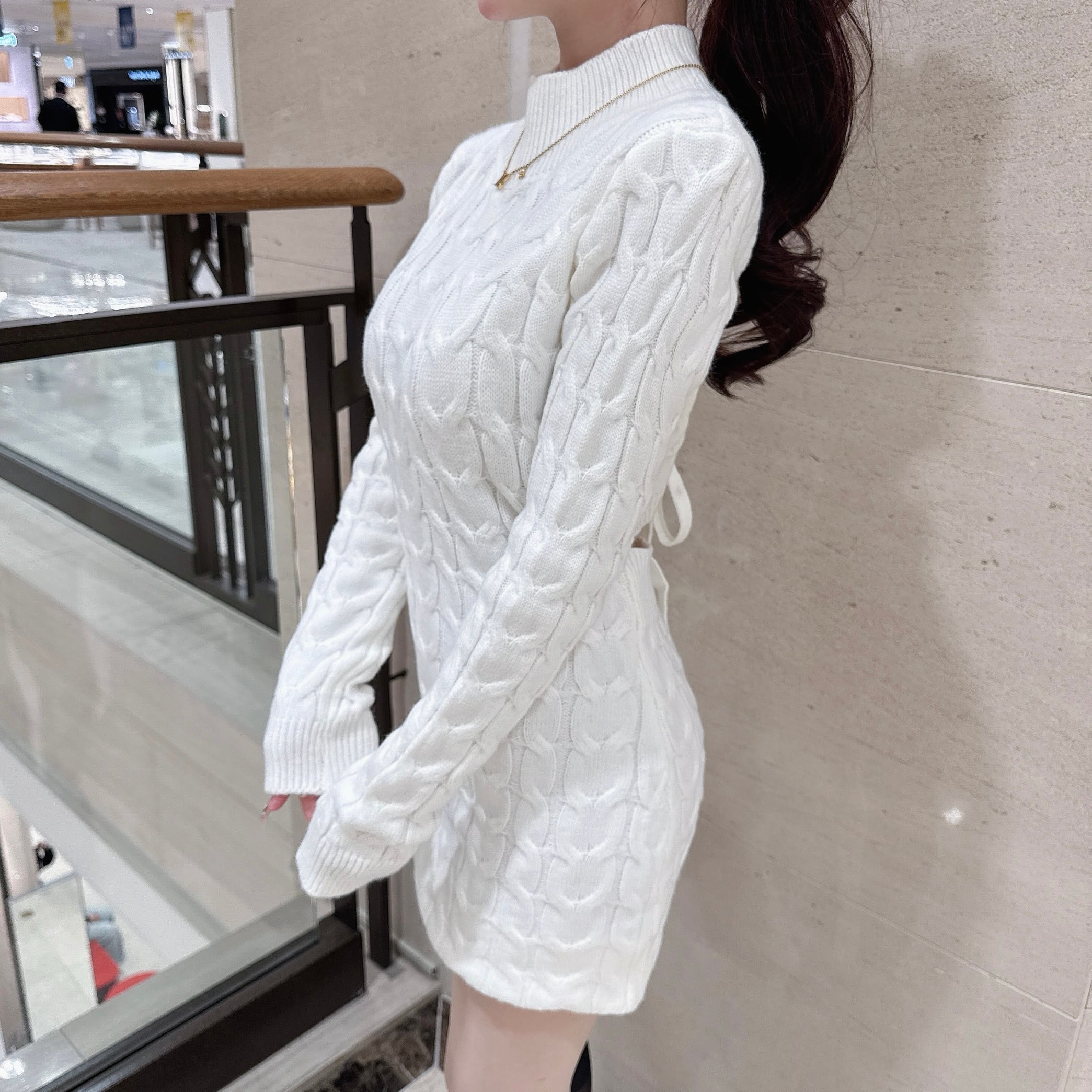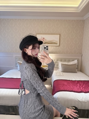 back ribbonケーブルニットワンピ2色