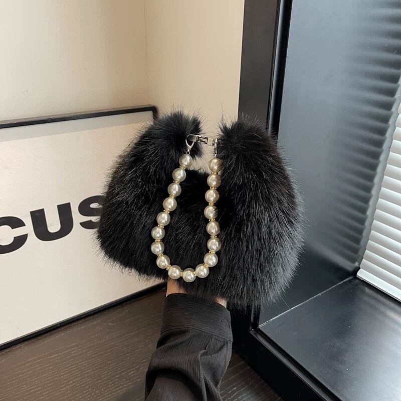 パールチェーンが付いた冬っぽファーバッグ...❤︎